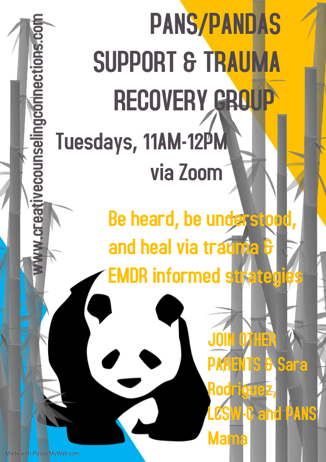 Join us for a *virtual* 8-week PANS/PANDAS group for $25 each group ($200 total for entire series). Group runs Tuesdays at 12 noon but will be ongoing- sign up anytime. Friday 12 noon EST cohort forming. Please sign up HERE if you are interested, select preferred cohort: PANS/PANDAS PARENT SUPPORT & TRAUMA RECOVERY GROUP